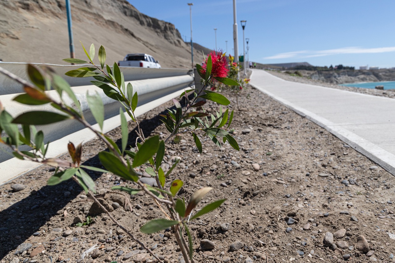 Este sábado, con la colocación de plantas ornamentales que embellecen el sector, se completó la puesta en valor del nuevo paseo costero que se extiende desde el edificio de Prefectura, en la costanera céntrica, hasta el Cenotafio ubicado frente al lateral del cerro Chenque.