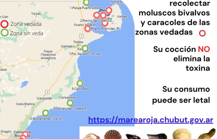 Provincia informa que continúa la veda por Marea Roja en los Golfos San José y Nuevo