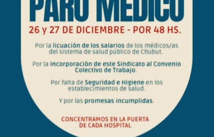 Paro de médicos en Chubut: “Lo que nos pagan por la hora guardia no es ni una Coca-Cola”